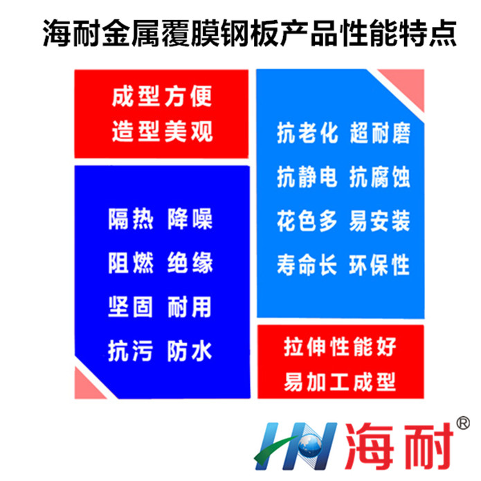 海耐金屬覆膜鋼板是在金屬基材上面覆了一層膜。用高光膜或幻彩膜、耐候膜、隔熱膜。經(jīng)高分子膠膜熱壓覆合而成。金屬覆膜板光澤鮮艷,可挑選花色品種多,防水、防火,具有優(yōu)良的耐久性(耐候性、耐蝕性、耐化學(xué)性)和抗污能力,防紫外線性能優(yōu)越。海耐金屬覆膜鋼板(咨詢:0510-83326008)的材質(zhì)和厚度也不同。高分子納米覆膜是一種新式覆膜工藝,一層膜一層金屬板經(jīng)過高溫高壓壓合而成。
